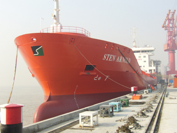 長興基地一期的建設,為支持上海舉辦2010年世博會作出了突出貢獻,是我國民族工業(yè)的發(fā)祥地、百年老廠江南造船廠獲得的新的發(fā)展空間和機遇。該項目的建成,對積極應對國際金融危機的影響和沖擊,落實《船舶工業(yè)調(diào)整和振興規(guī)劃》提出的發(fā)展目標,優(yōu)化我國船舶工業(yè)布局,提高造船基礎設施水平,增強船舶工業(yè)國際競爭力具有重要意義,為實現(xiàn)我國由造船大國向造船強國的轉(zhuǎn)變奠定了堅實基礎。 長興造船基地首制船交付 ( 2007-12-24 ) 中船江南長興造船基地傳來喜訊:12月18日,由江南造船(集團)有限責任公司建造的長興基地首制船“STEN ARNOLD”號順利交付。這標志著長興三號線——未來世界最大造船基地的第一條生產(chǎn)線流程全面打通,其里程碑意義將永久載入中國造船史冊。 “STEN ARNOLD”號是江南造船(集團)公司為挪威船東建造的16400噸化學品船,總長144米,型寬23米,型深12.4米,于2006年9月26日正式開工建造,長興基地也由此進入邊建設、邊生產(chǎn)的階段。3個月后,該船上船臺,2007年5月22日下水,11月24日試航。 目前,長興造船基地生產(chǎn)如火如荼:除首制船外,江南造船(集團)公司又開工7艘船,包括5艘16500噸化學品船、2艘22000立方米LPG船,其中下水5艘;江南長興造船有限責任公司開工6艘船,包括3艘30萬噸VLCC、2艘17.7萬噸散貨船和1艘7.6萬噸散貨船;江南長興重工有限責任公司開工1艘5100TEU集裝箱船。